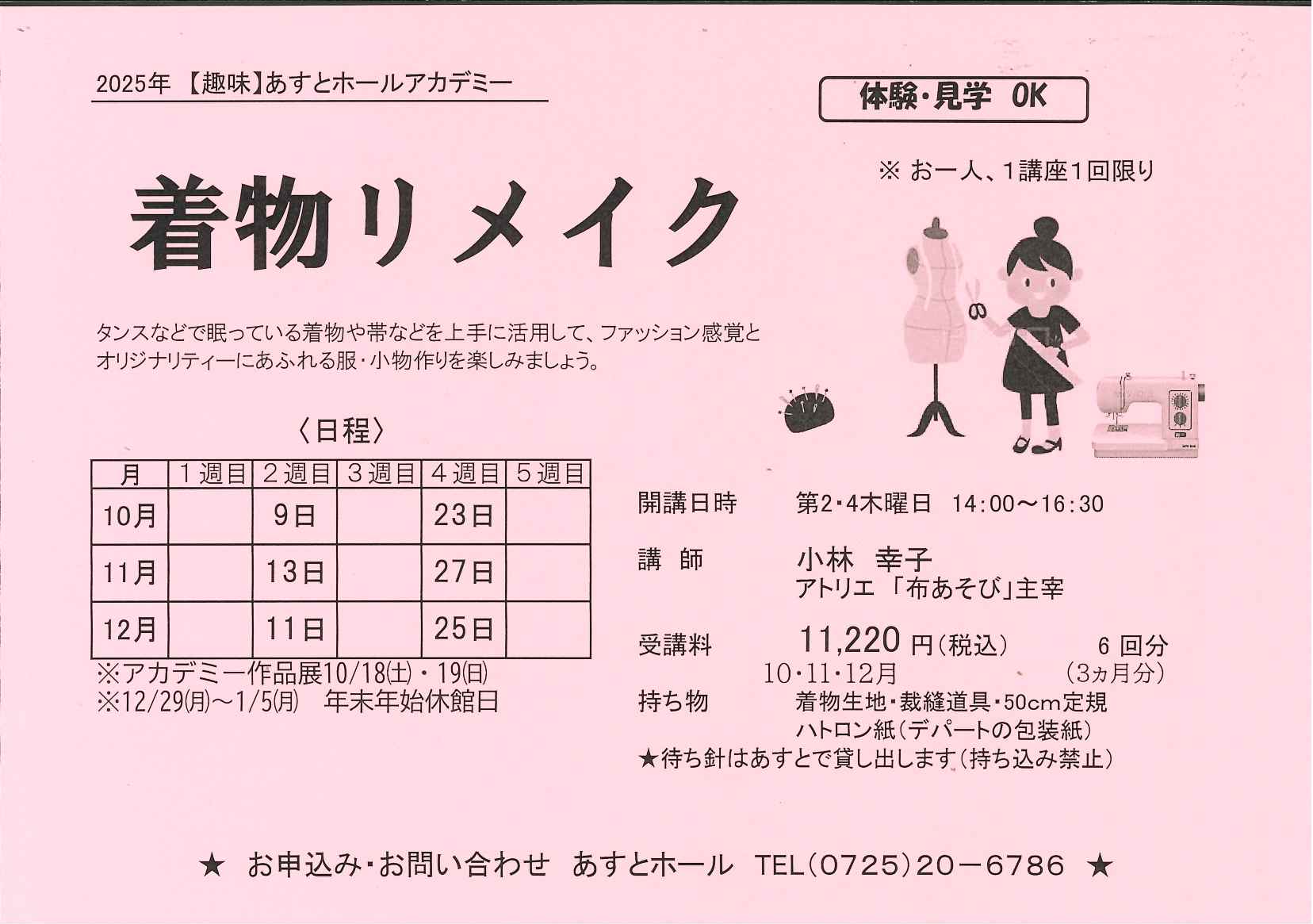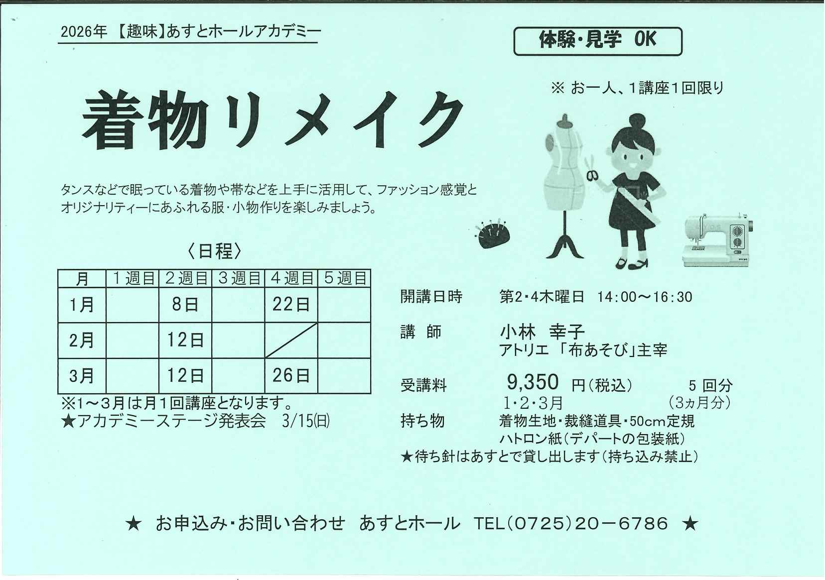 タンスなどで眠っている着物や帯などを上手に活用して、ファッション感覚とオリジナリティーあふれる、服・小物作りを楽しみましょう。