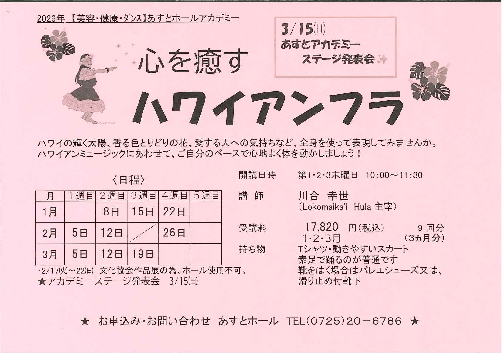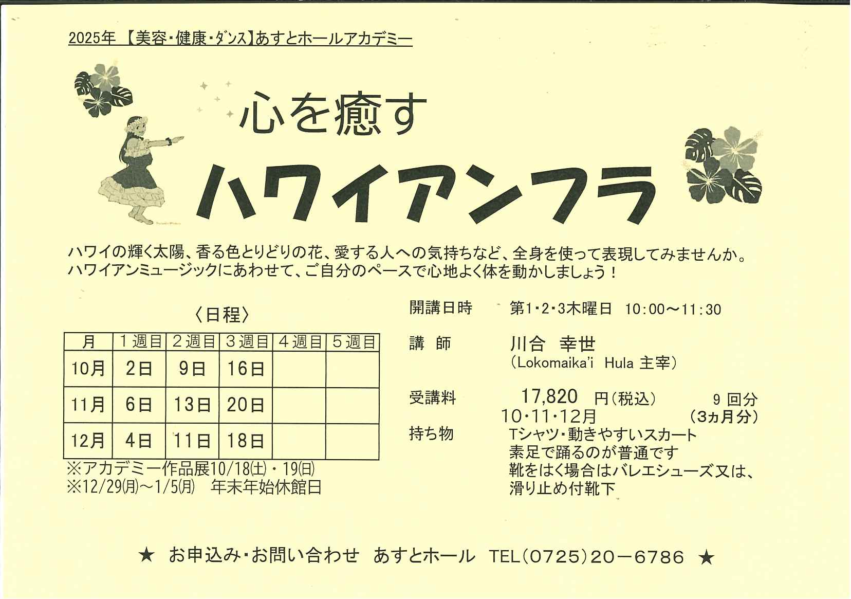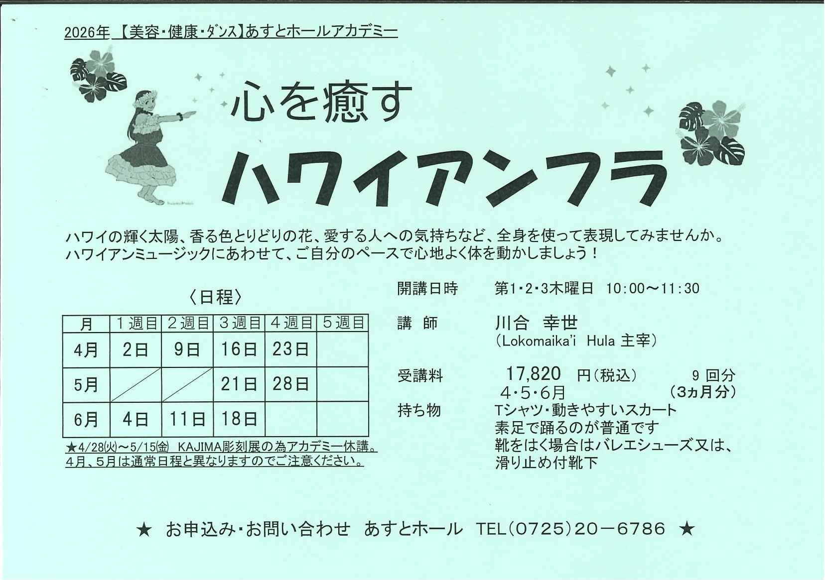 ハワイアンミュージックにあわせてご自分のペースで心地よく体を動かしましょう!