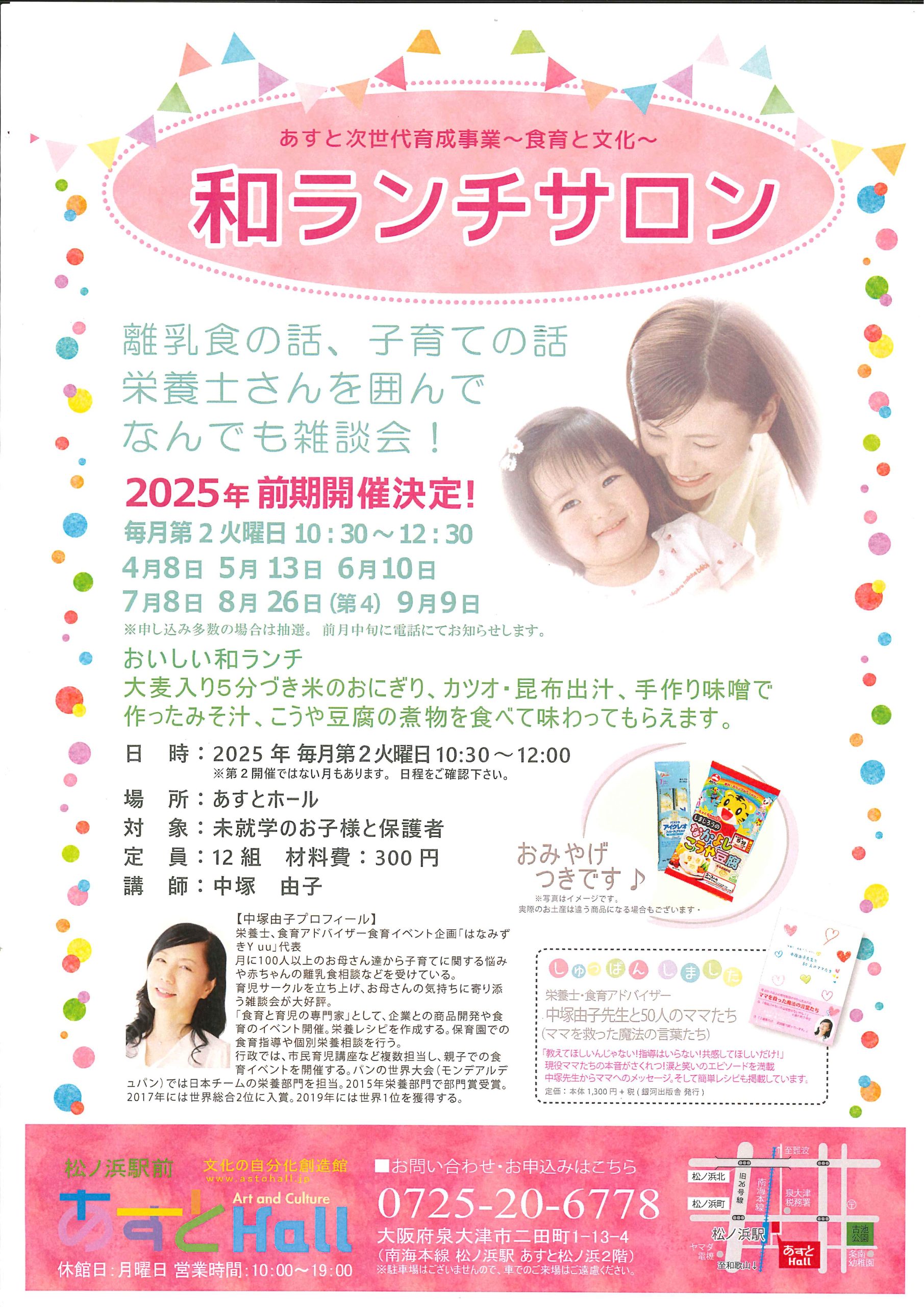 | 2025年12月9日 | 子どもアート教室無料体験会のお知らせ | あすとホール | 幼児~小学2年生:15:30~17:00 小学2年生~:17:30~18:30の子どもアート教室の時間内 |