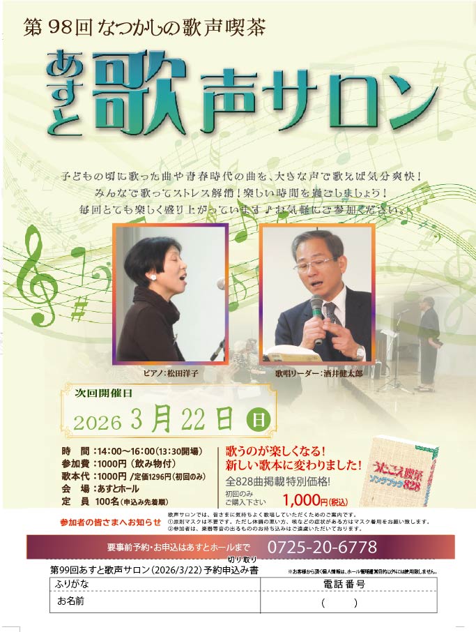 歌本代1,000円、初回のみご購入下さい。(初回から歌本購入が不安な方、初回のみレンタル致します。)